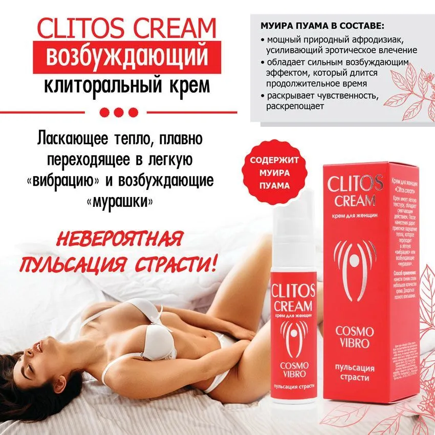 Возбуждающий крем для женщин «Clitos Cream» позволит сделать интимную близость просто незабываемой! Он обладает сильным стимулирующим эффектом, который длится продолжительное время. Раскрывает чувственность и раскрепощает. Его оригинальный состав включает муира-пуаму - мощный природный афродизиак, усиливающий эротическое влечение.