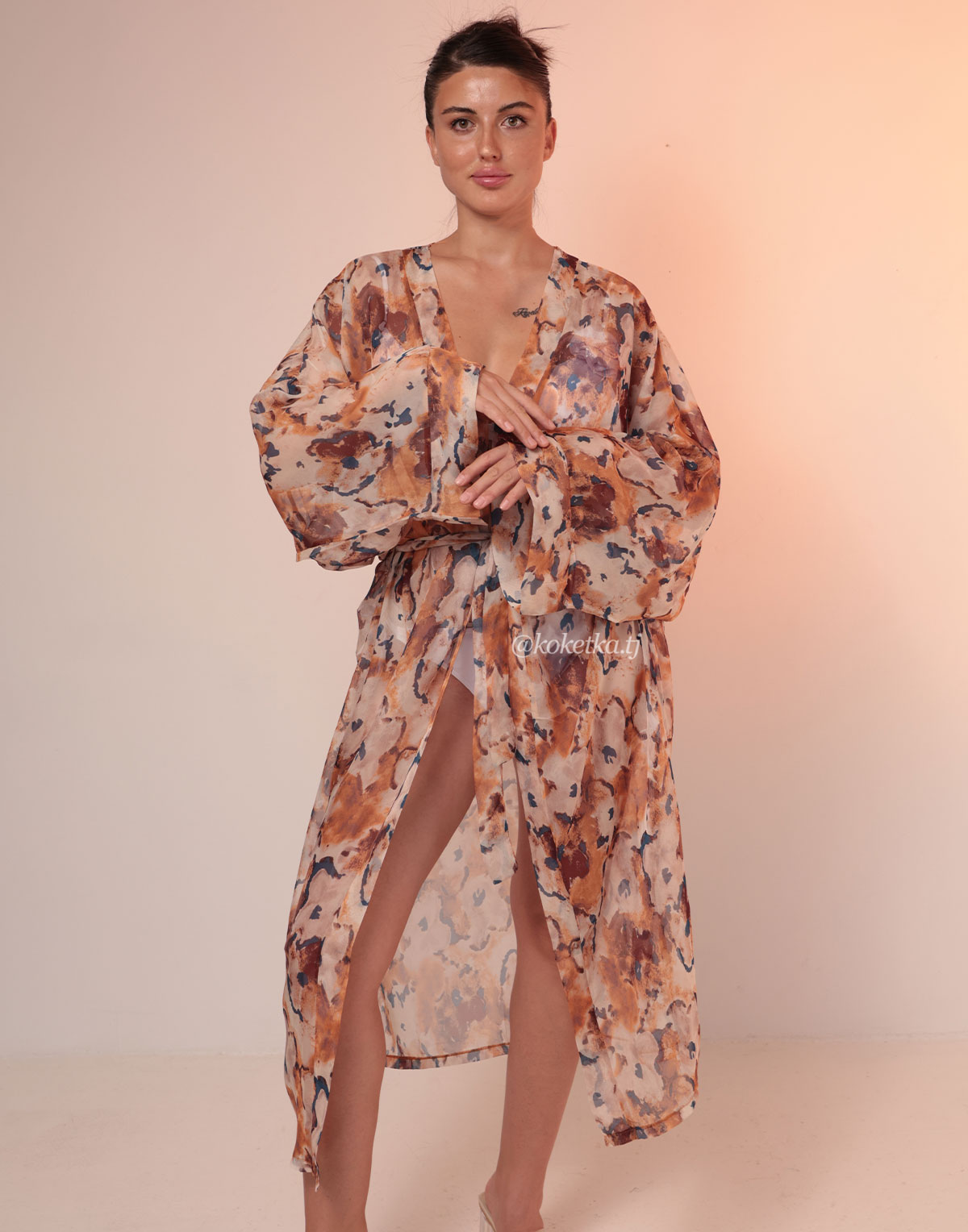 Пляжная накидка выполнен из красивого легкого материала. Отличительной чертой такого изделия является то, что оно не оставит равнодушным к вам противоположный пол, которому очень нравится этот материал.