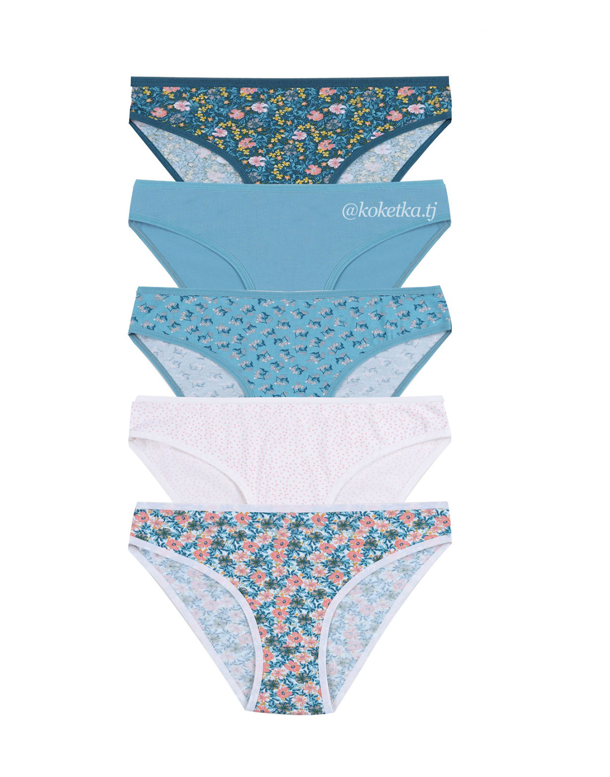 Востребованный набор из 5 штук — из очень популярных разных принтов! Надежная, и не тугая резинка, удобный крой трусиков повторяет анатомические особенности тела, а мягкие швы не вызывают раздражения!