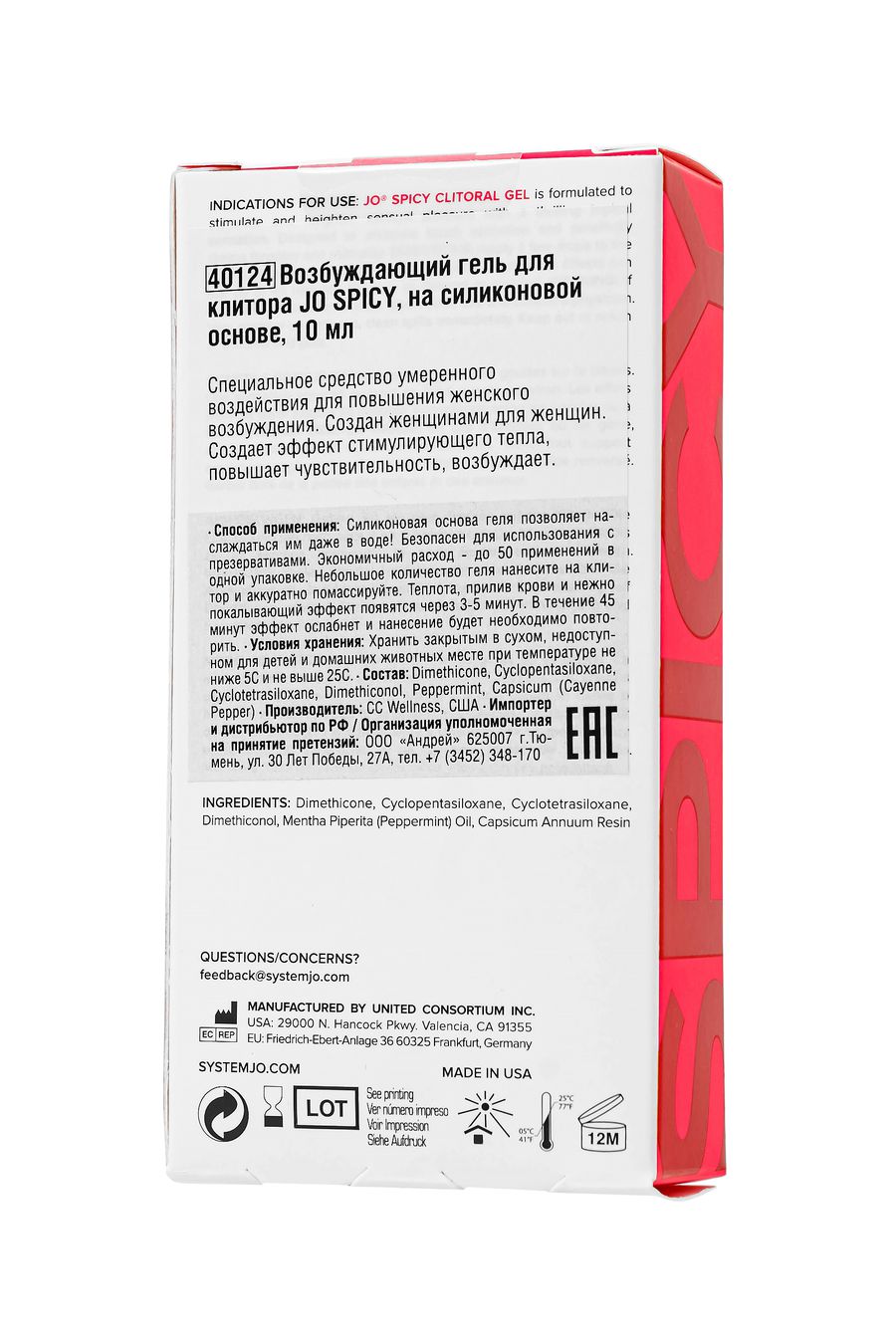 JO SPICY рассчитан на экономичный расход: один компактный флакон объемом 10 мл хватает до 50 применений. Чтобы ощутить всю магию геля, нанесите небольшое количество на клитор и слегка помассируйте. Эффект длится до 45 минут, а затем его можно легко обновить. Уникальная силиконовая основа делает гель идеальным даже для использования в воде — например, в душе или ванной.